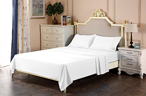 Queen Size Luxury 4pc Bed Sheets Set - 1 flat sheet 102"x90", 1 fitted sheet 80"x60", 2 pillowcases 20"x30". Deep pocket fitted sheet with elastic all around (not just the corners, like other sheets).