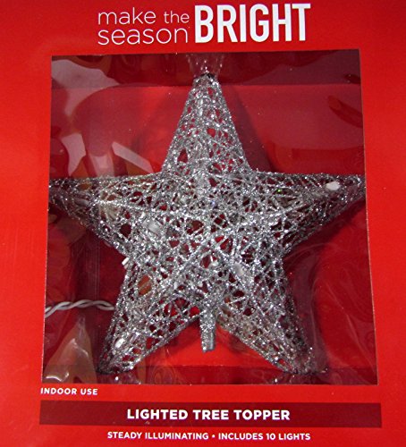 LIGHTED STAR TREE TOPPER SILVER GLITTER CHRISTMAS HOLIDAY DECORATION 10 LIGHTS (SILVER)