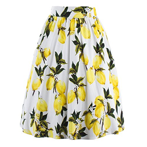-. Title : SISHION 50s Floral Skirts Womens Summer Yellow Retro Casual Vintage Midi Skater Pleated Skirt VD0355