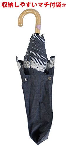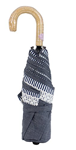 -. Title : 晴雨兼用 日傘 UVカット 紫外線遮蔽率90% TC裾ストライプ 軽量折りたたみ 50cm ミニ傘 (紺)