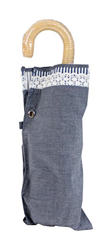-. Feature : カラー:紺 親骨:50cm×6本骨 / 生地:本体:ポリエステル65% 綿:35% フリル部分:ポリエステル100% 生地効果:紫外線遮蔽率90% / 骨素材:親骨-アルミ+グラスファイバー樹脂 受骨-アルミ 中棒-鉄+アルミ / 全長:約57.5cm 収縮時:約29.5cm 開いた時の直径:約94cm / 重量:約225g