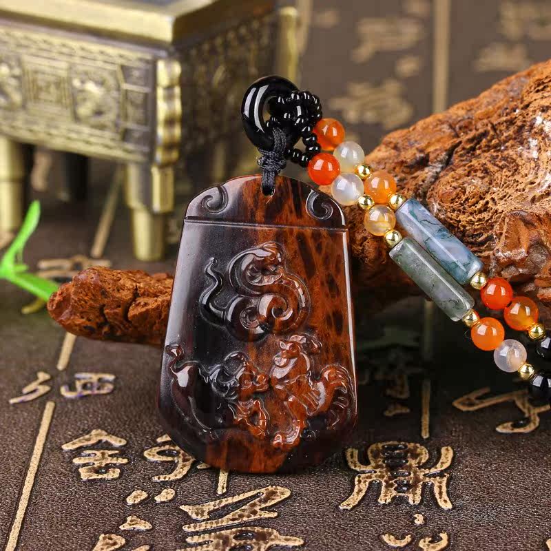 开光天然金丝红曜石生肖吉祥物属蛇属鸡属牛【三合通运】吊坠男女