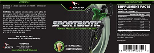 -. Feature : PROMOTE IMMUNE & DIGESTIVE HEALTH PROBIOTICS | Boost your immune system and improve your digestion with the ultimate chewable probiotic tablets. Ideal for all adults, men and women who are fitness oriented and lead a healthy lifestyle! / ALL THE NECESSARY PROBIOTIC STRAINS COMBINED | Forget all those poorly made probiotic supplements that would do more harm than good and try our advanced probiotic blend today. Lactobacillus, Acidophilous and digestive enzymes to the rescue! Our tablets are overfilled at time of manufacturing to ensure potency! / DELICIOUSLY FLAVORED CHEWABLE TABLETS | No more badly tasting probiotic tablets from now on. Ai Sports Nutrition chewable probiotic tablets are chocolate flavored and will be loved by all. Manufactured in the USA in a cGMP compliant facility. / REDUCE BLOATING & BOWEL PROBLEMS | These probiotic tablets will boost your immune system, improve your digestion and promote weight loss. Ideal for bowel issues and persistent bloating or gases. Helps in constipation and diarrhea problems. / GET THE 60 CHEWABLE TABLETS | Our potent chewable probiotic tablets come in a nice bottle for safe storage. Refrigeration not required. Store at room temperature.