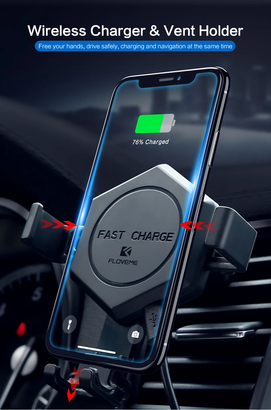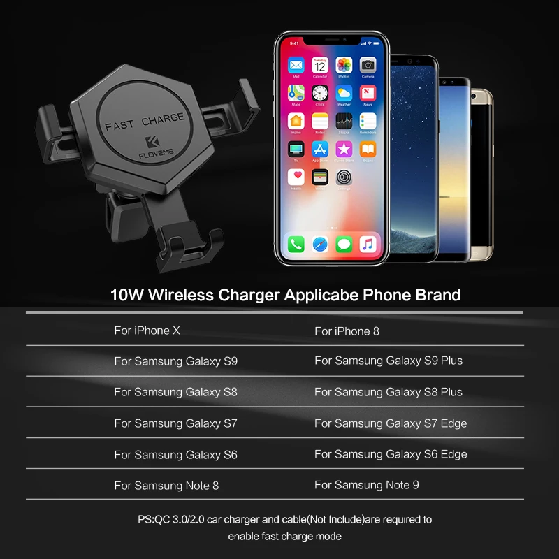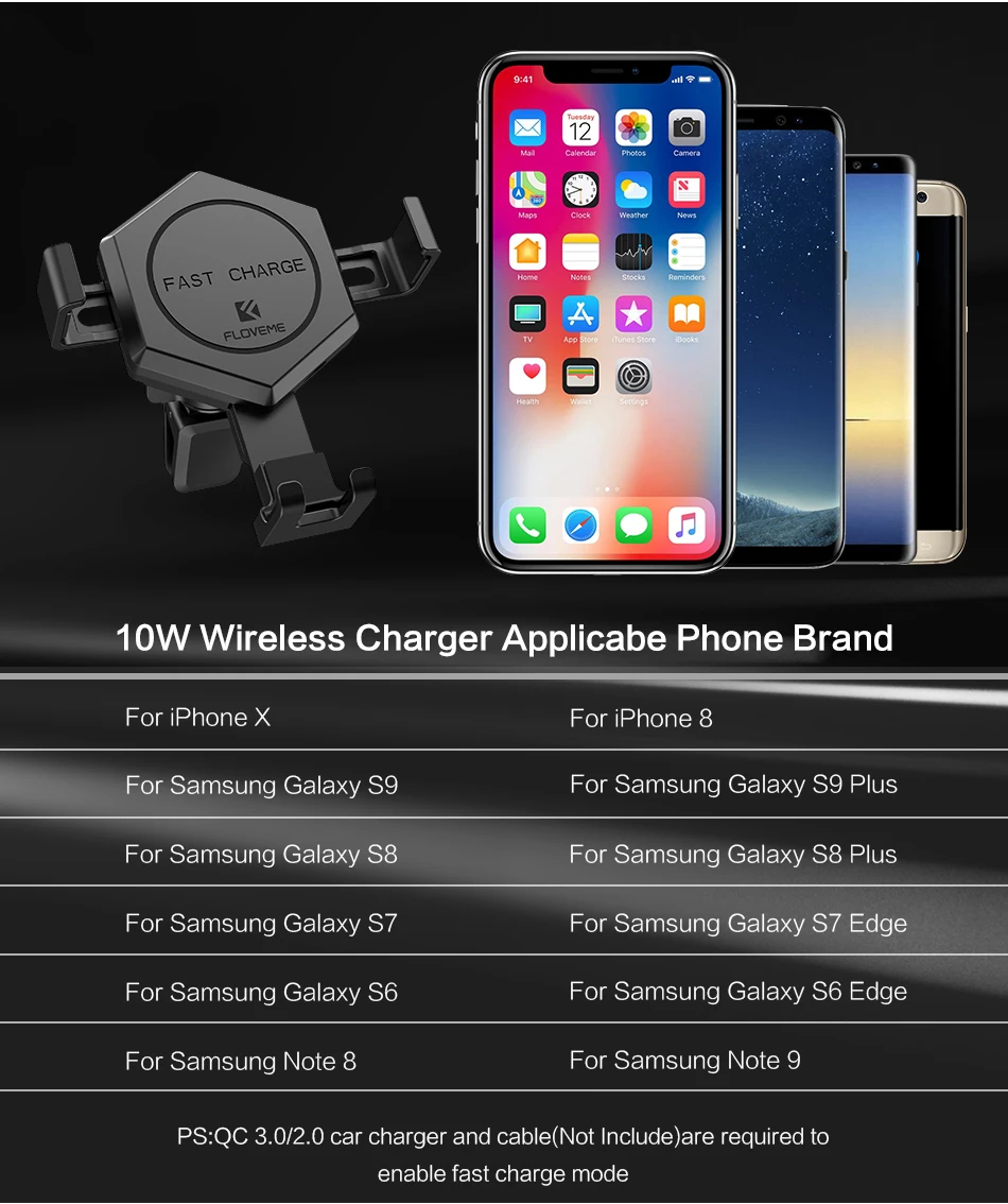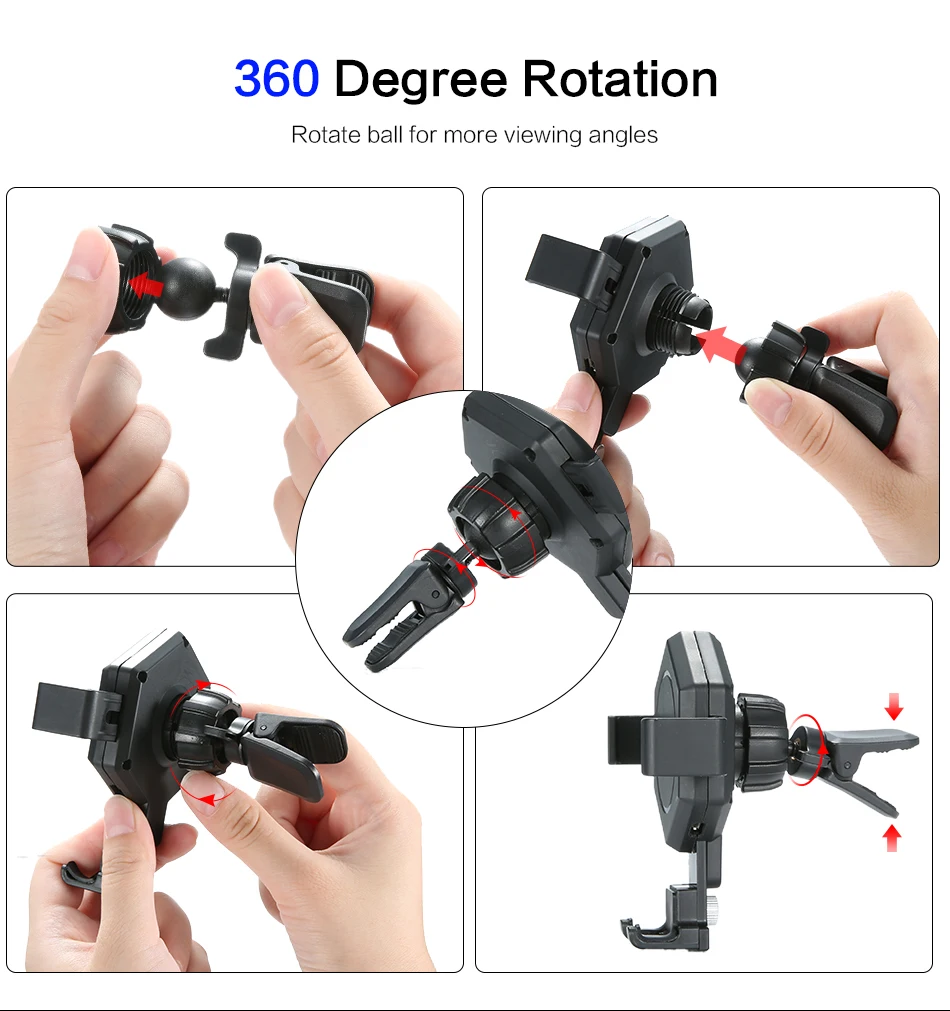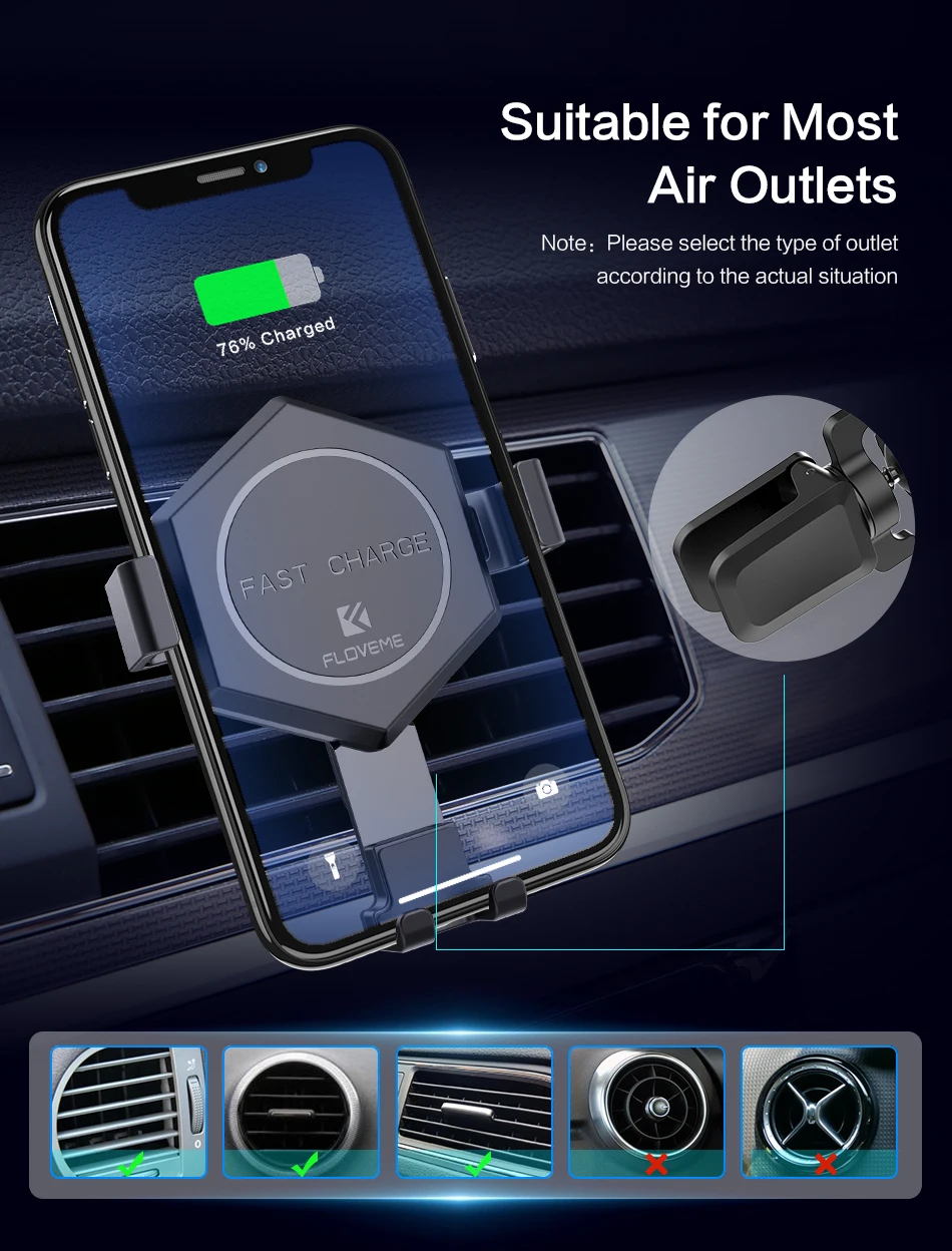 Feature 1:10W Qi Car Wireless Charger + Air Vent Mount Car Phone Holder