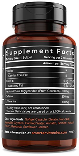 Energy caffeine pills made with l-theanine and MCT Oil sourced from 100% coconuts. Contains no palm oil. Smooth energy pills for focus and alertness.