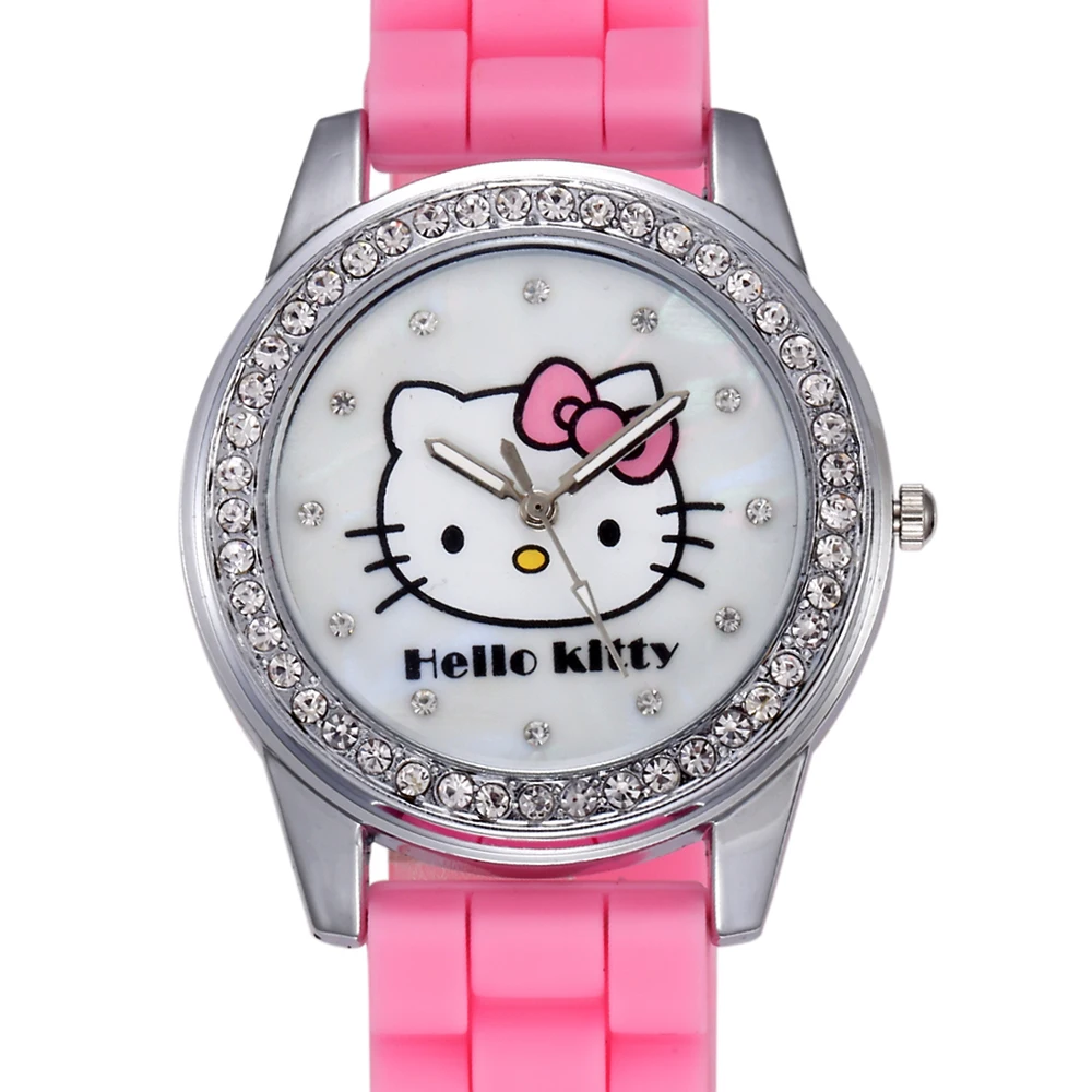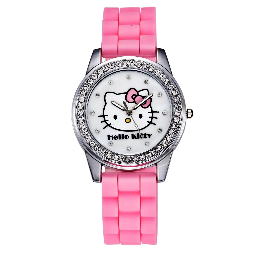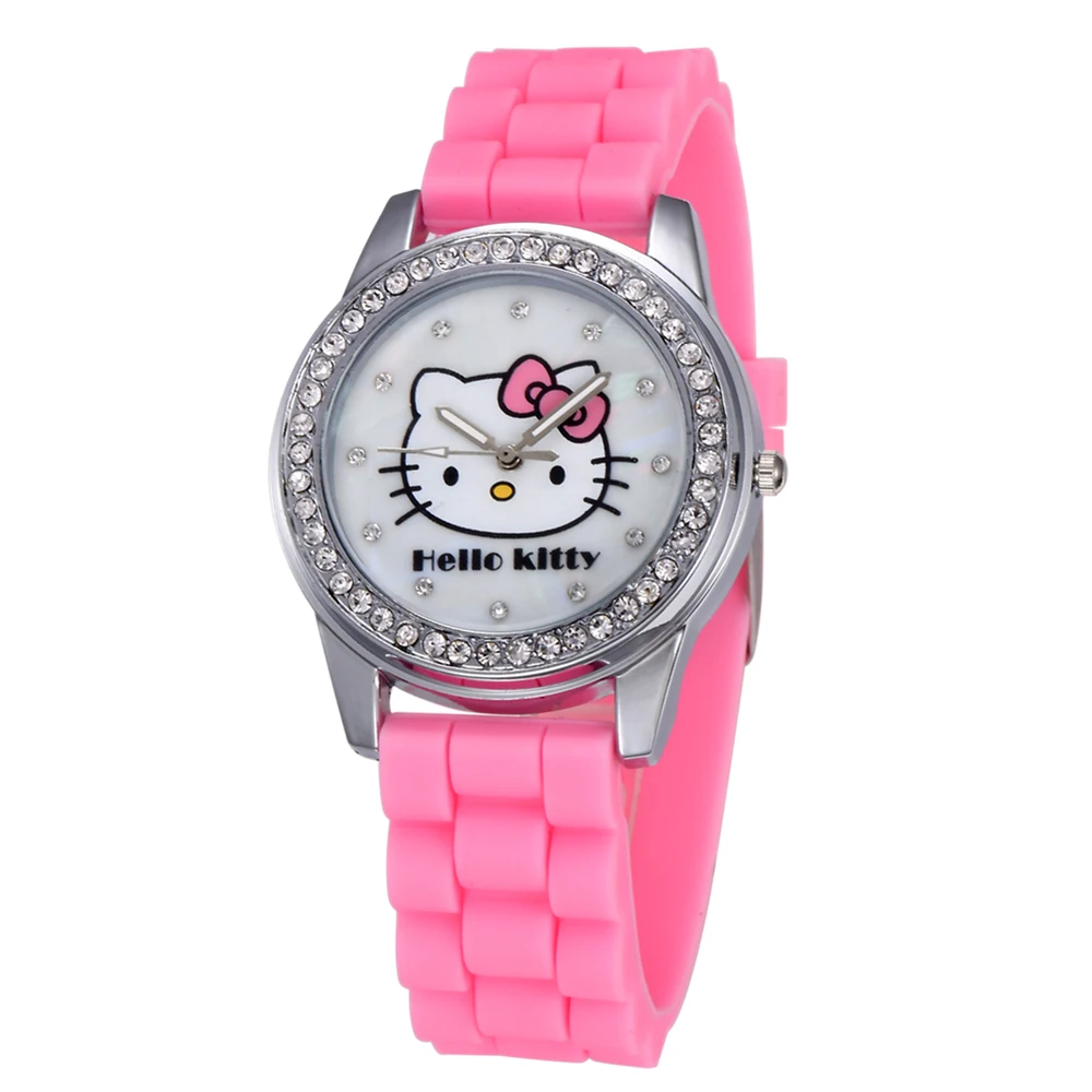 Style 5:Hello Kitty Cartoon Pink Leather Strap Net Band Cute Wristwatch