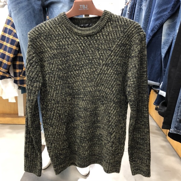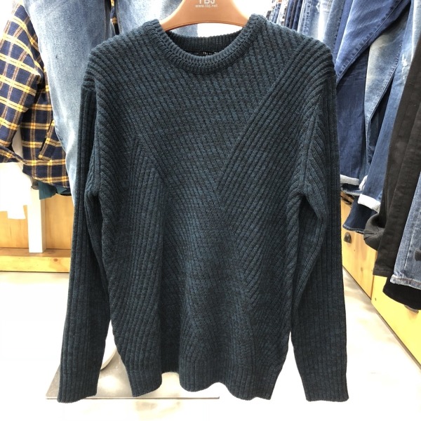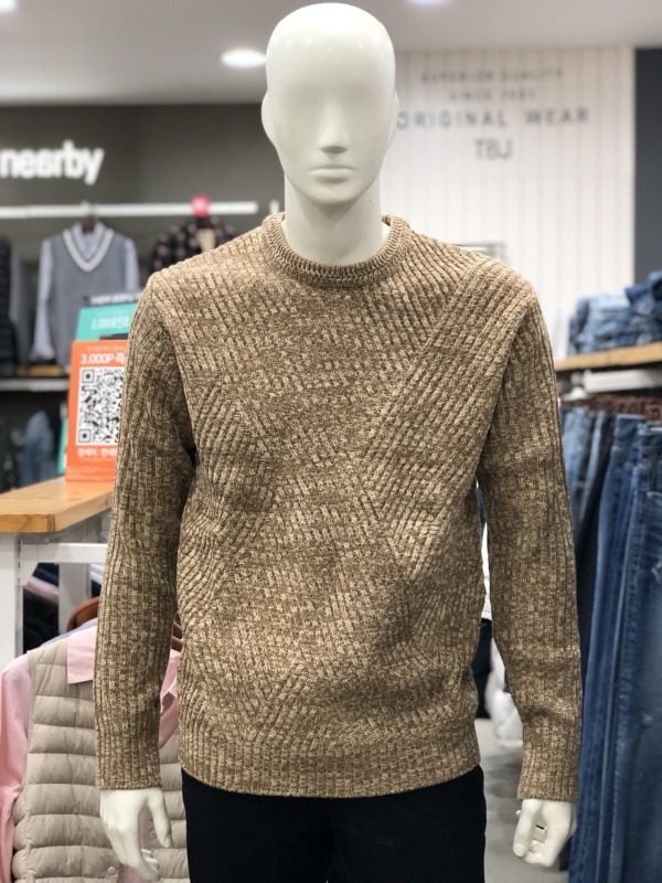 남성 라운드넥 변형조직 니트 풀오 T184KT100P