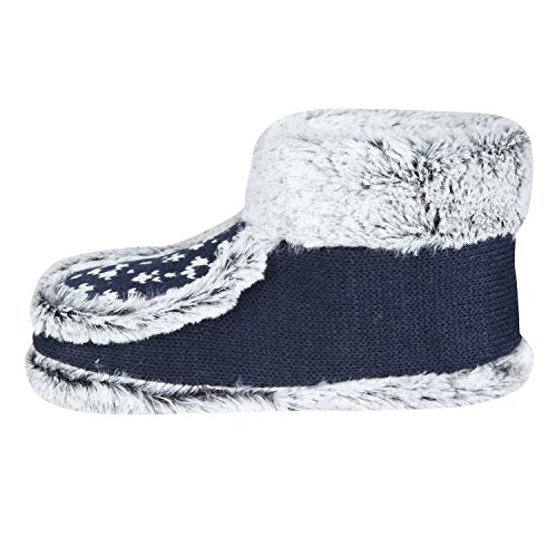 Product Description Lined in plush pile with miracle memory foam insoles to soothe every step you take. Offers a perfect customized fit with stylish overall Nordic knit design and fur-look trim at ankles. Secure non-skid safety soles are ideal for indoor/outdoor use. Fashion import of polyester. 0