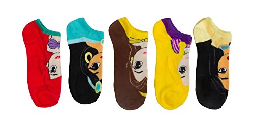 This sock bundle includes an assortment of 5 pack no show socks with classic Disney princess design