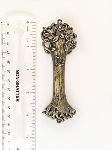 Bless This House, Tree of Life - Mezuzah Case, Wooden Texture Gold Color Design Crafted in Heavy Brass 4" For Jewish Homes