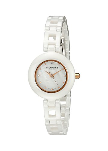 -. Binding : Watch -. Brand : Stuhrling Original -. Color : White/White -. Department : womens -. EAN : 0847988036320 -. Feature : Watch featuring mother-of-pearl dial with rose gold-tone accents and sparkling round at 12 o'clock / 25 mm ceramic case with mineral dial window / Swiss quartz movement with analog display / Ceramic link bracelet with deployant-clasp closure / Water resistant to 30 m (99 ft) -. IsAdultProduct : 0 -. Label : Stuhrling Original -. Manufacturer : Stuhrling Original -. Model : 921.01 -. MPN : 921.01 -. PackageQuantity : 1 -. PartNumber : 921.01 -. ProductGroup : Watch -. ProductTypeName : WATCH -. Publisher : Stuhrling Original -. Size : Standard -. Studio : Stuhrling Original -. Title : Stuhrling Original Women's 921.01 Leisure Petit Ceramic Watch -. UPC : 847988036320 -. Warranty : Manufacturer