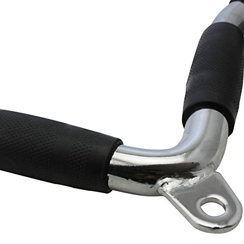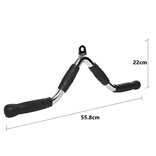 Studio : AHHC INC Publisher : AHHC INC Binding : Misc. Product Description It is a well-made triceps v-bar with rubber hand grips that suits most cable systems. 22 inches long, 8.5 inches wide, weighs 6.5 lbs, it is used for triceps pull down exercise. Durable steel construction with rubber handgrips and rubber end caps, it is stationary throughout the entire movement when in use, it effectively blows your triceps up. Single hammer curls or single hammer push downs, V bar curls and another exercises for arm wrestling training lever training can be performed with this bar.The cap deluxe triceps press-down bar is good for developing your triceps muscles.Works with any machine with a hook for connecting lateral bars of different kinds. 0