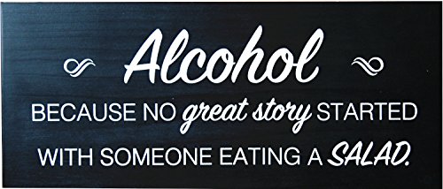 Primitive Wood Sign for Bar or Kitchen, Alcohol Because No Great Story, 14 x 6 Inch, Black Wood Sign by Zazzy Signs