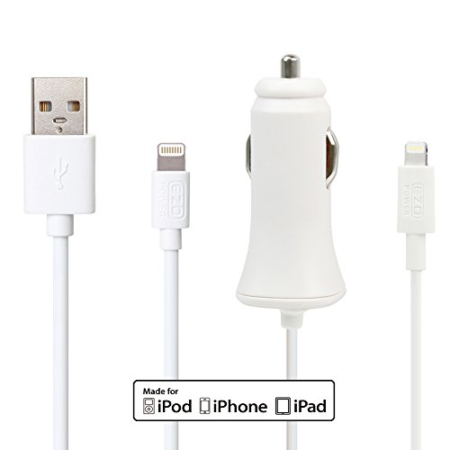 MFI Certified EZOPower 3 Feet Lightning Cable + 2.4A Lightning Car Charger For iPhone 7 / 6S / 6 Plus, New iPad 9.7 / Pro 9.7 / Pro 12.9/ iPad Air / iPad Mini