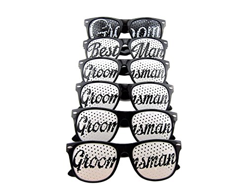 [6 PACK] Bachelor Party Sun Glasses Set for Bachelor Party - Groom Party Favors - Fun Photo Props Novelty Ideas (Black)