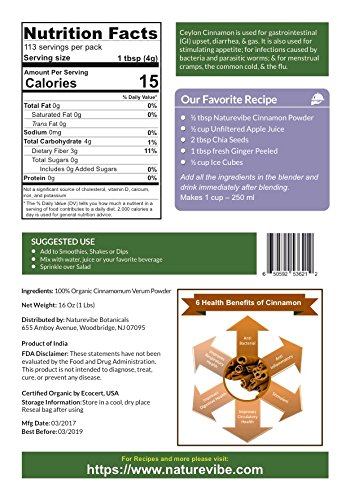 Certified by the USDA Organic, Naturevibe Ceylon Cinnamon Powder is a powerful spice that has been used medicinally around the world for thousands of years.