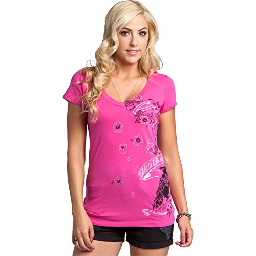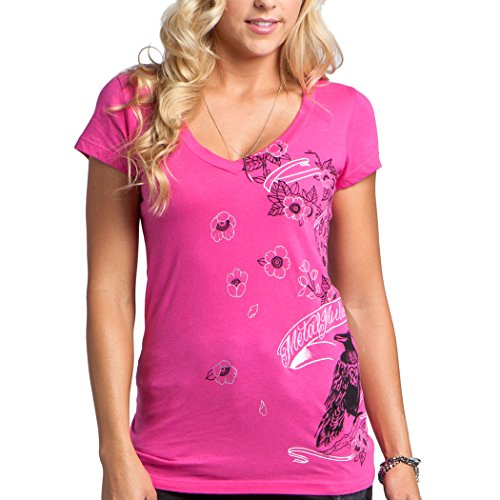 Metal Mulisha Womens Dani G Sweet Serenity V-Neck Short-Sleeve Shirt, Hot Pink, X-Small