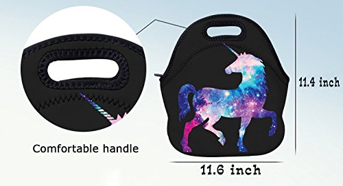 AOTIGO Galaxy Unicorn Insulated Waterproof Neoprene Lunch Tote Bag With Neoprene For Adults, Kids, Girls, And Women