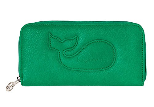 Bungalow360 Women's Vegan Faux Leather Zip Around Wallet - Whale (Emerald Green)