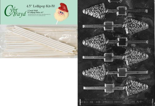 Cybrtrayd 00045St50-C082 Small Tree Lolly Christmas Chocolate/Candy Mold with 50 4.5-Inch Lollipop Sticks