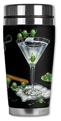 Mugzie 923-MAX "Michael Godard: Martini Limbo" Stainless Steel Travel Mug with Insulated Wetsuit Cover, 20 oz, Black