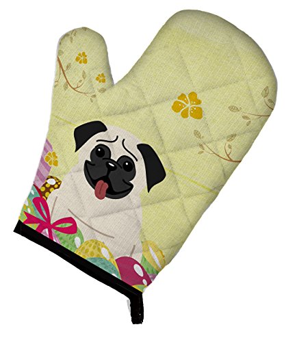 Caroline's Treasures Easter Eggs Pug Cream Oven Mitt, Multicolor, 12" x 8.5"