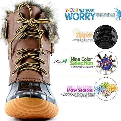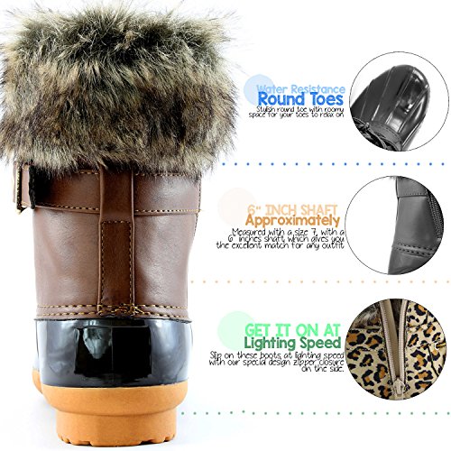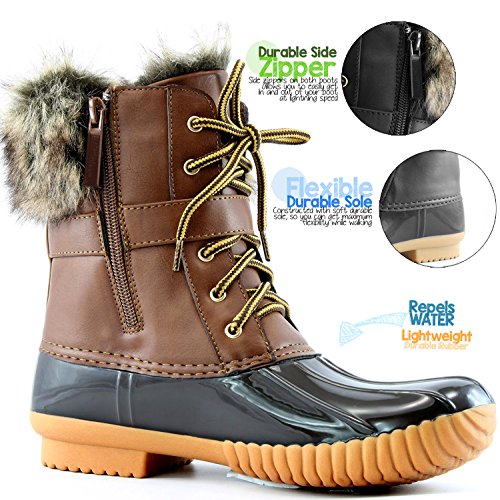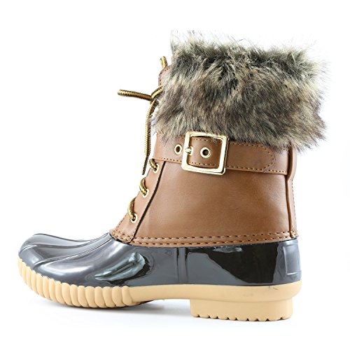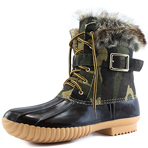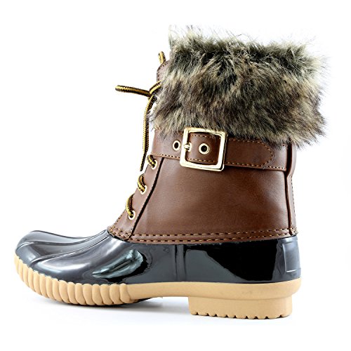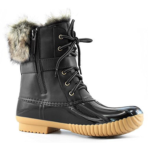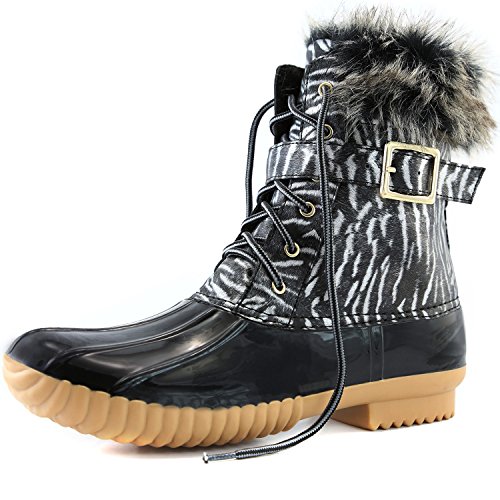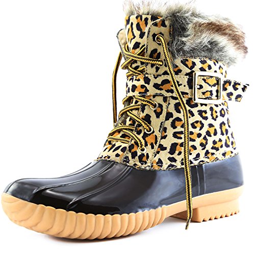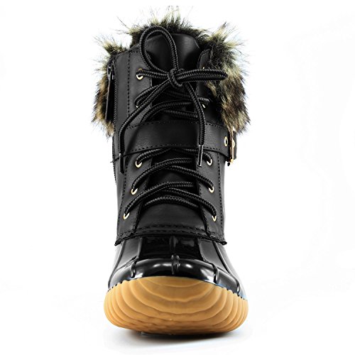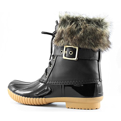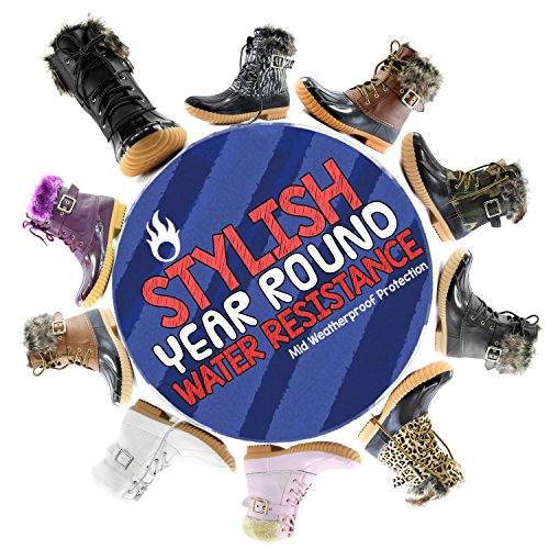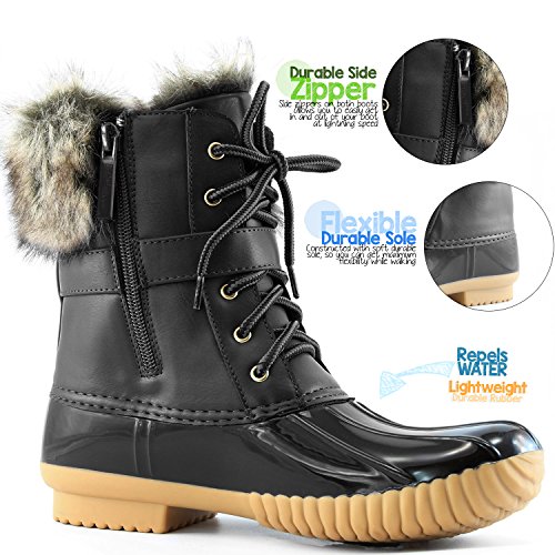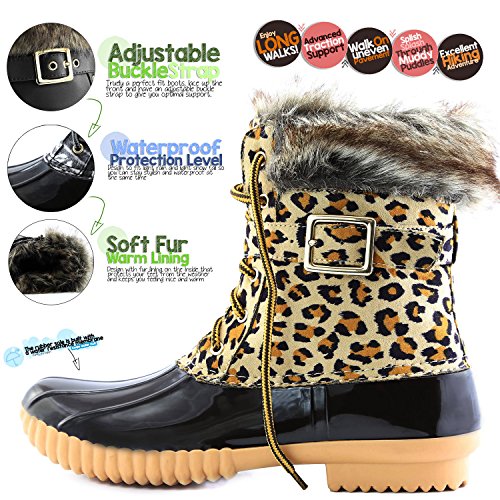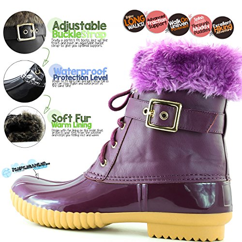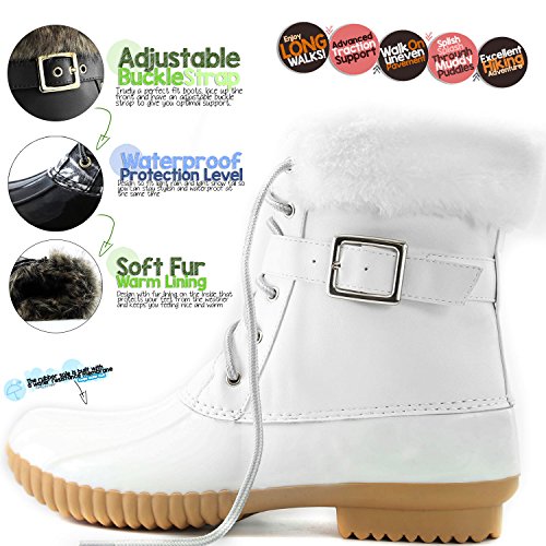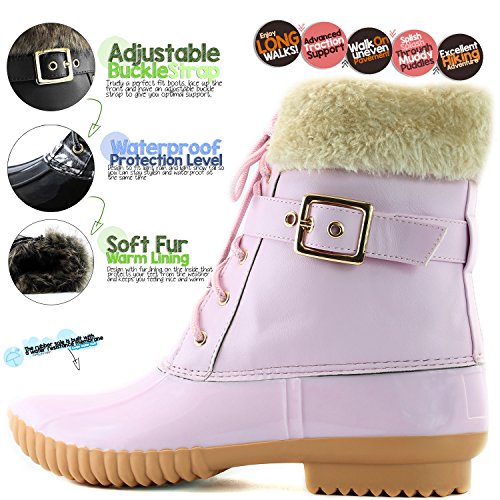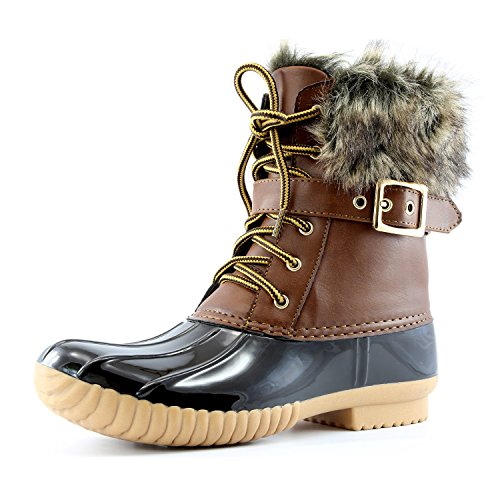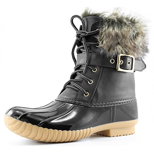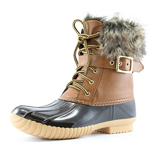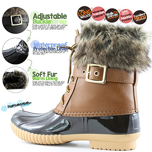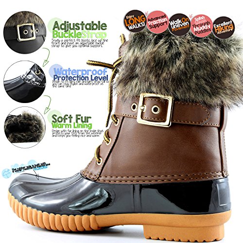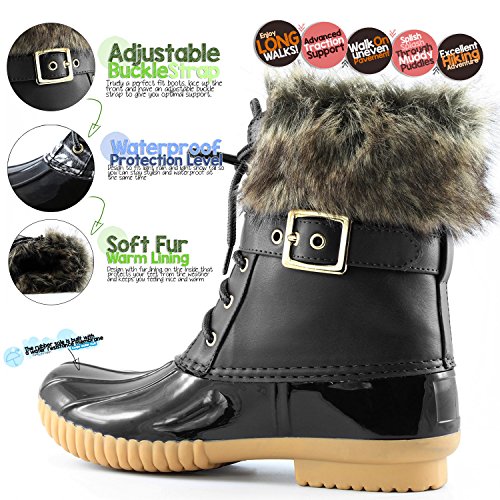 | DailyShoes Women's Snow Booties Lace Up Ankle Buckle Duck Padded Mud Rubber Rain boots |