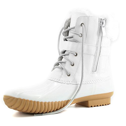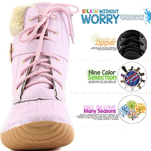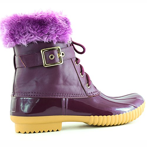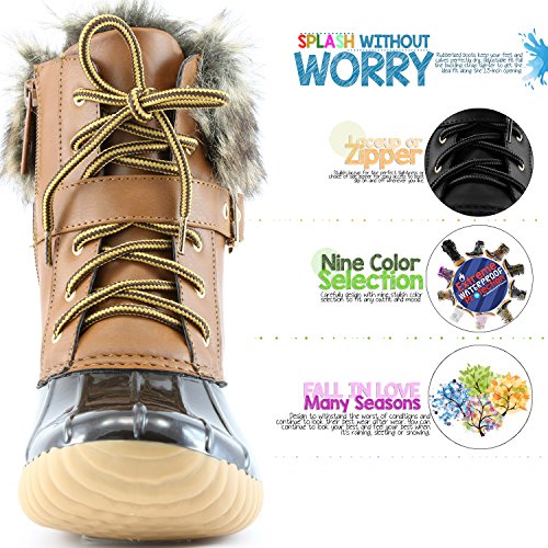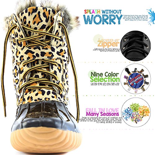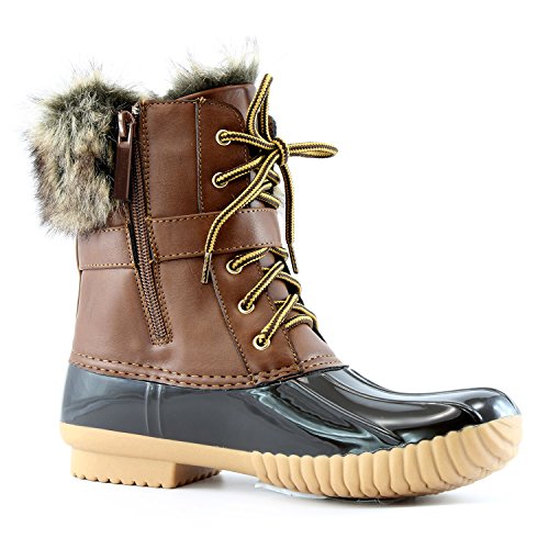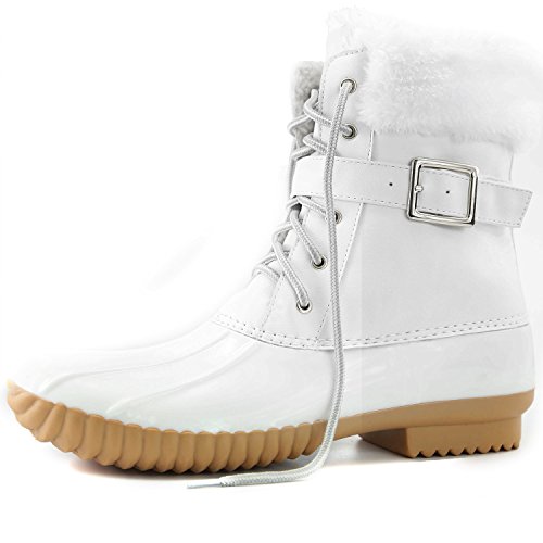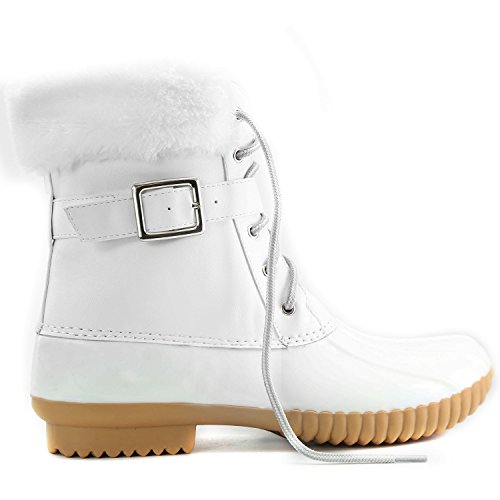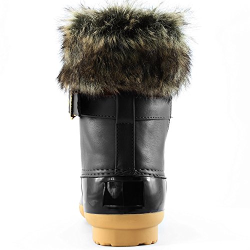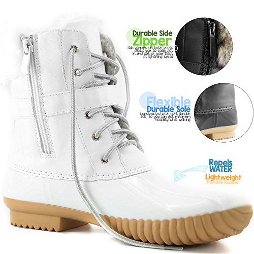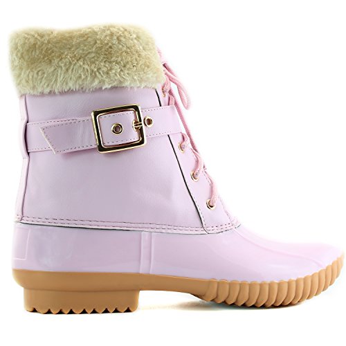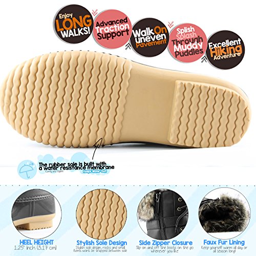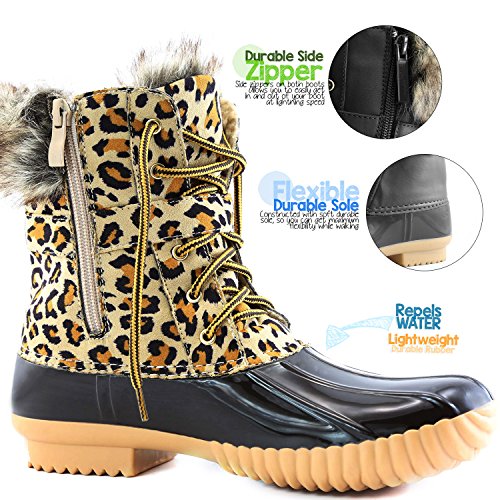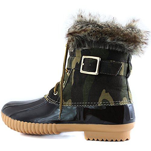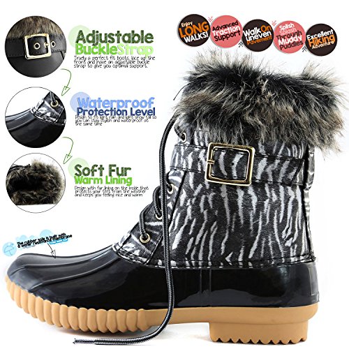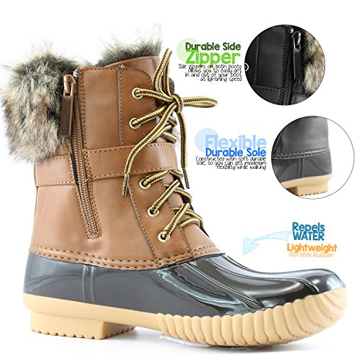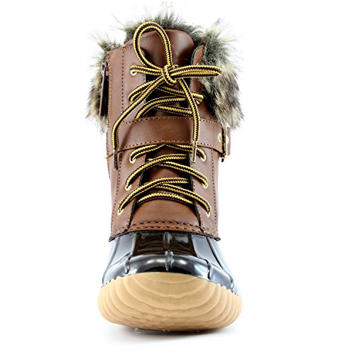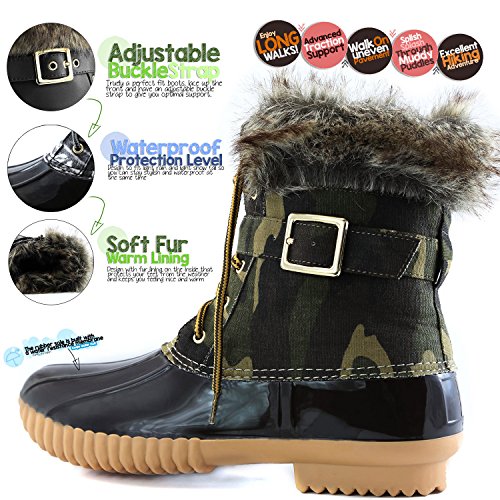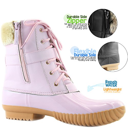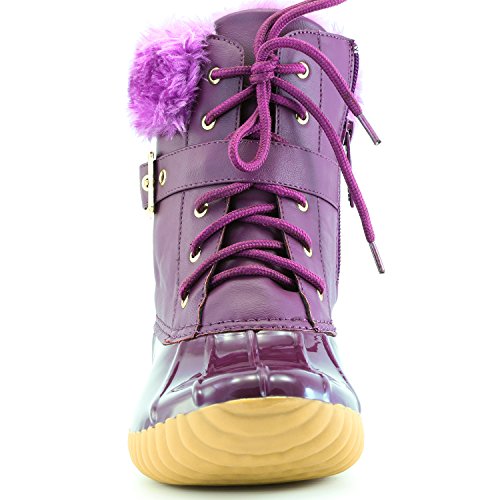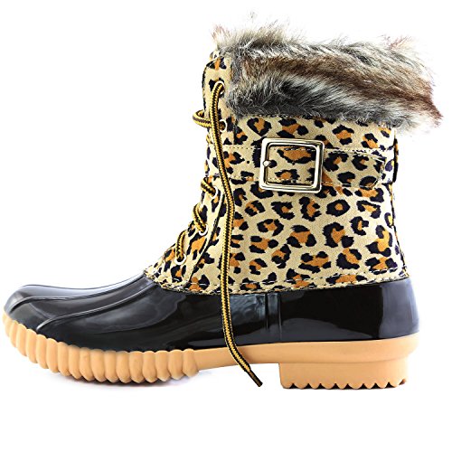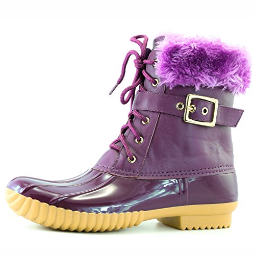 | DailyShoes Women's Snow Booties Lace Up Ankle Buckle Duck Padded Mud Rubber Rain boots |