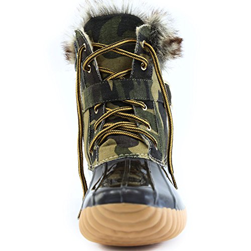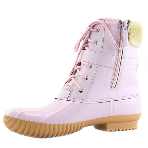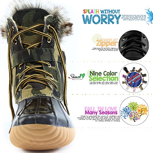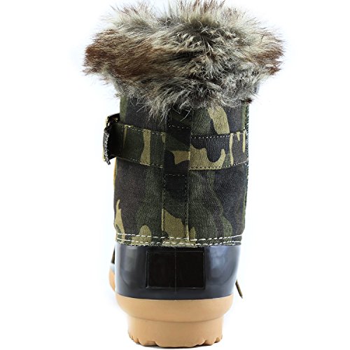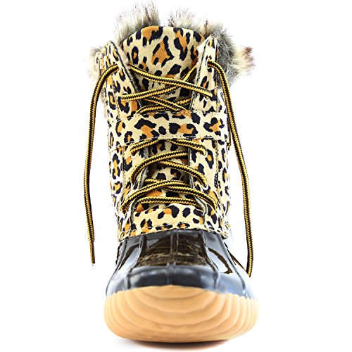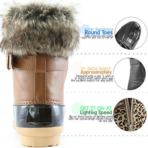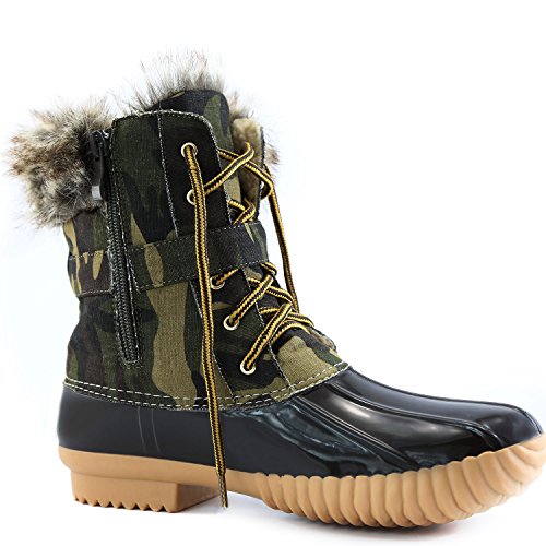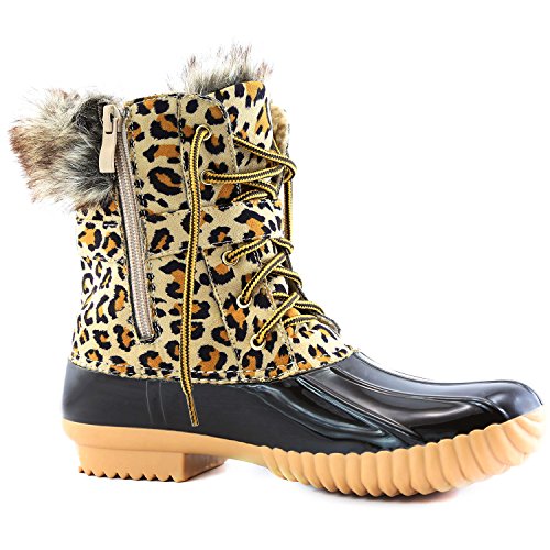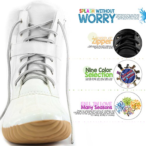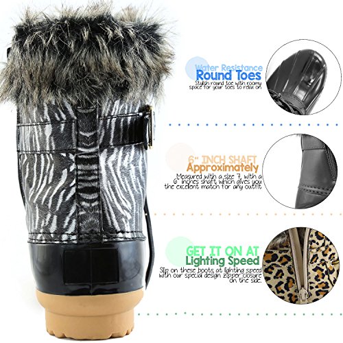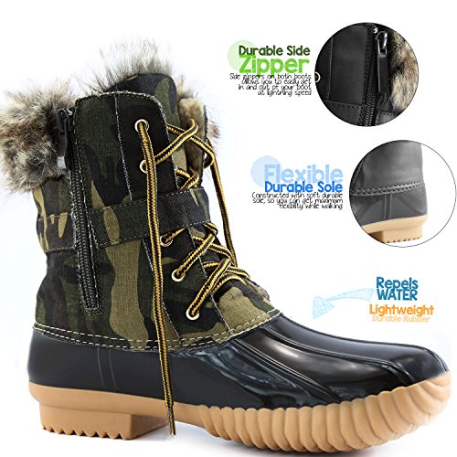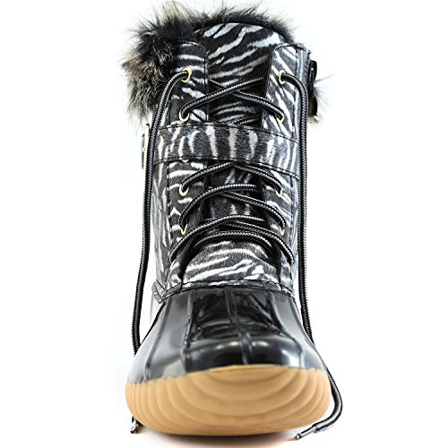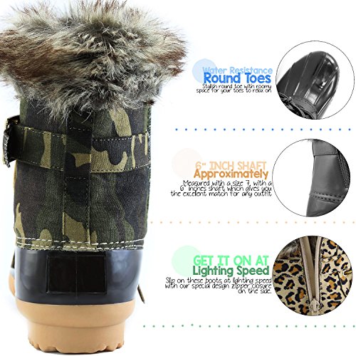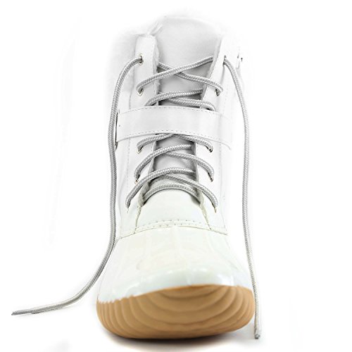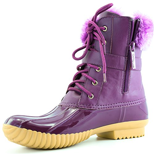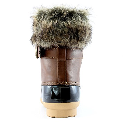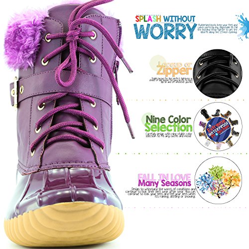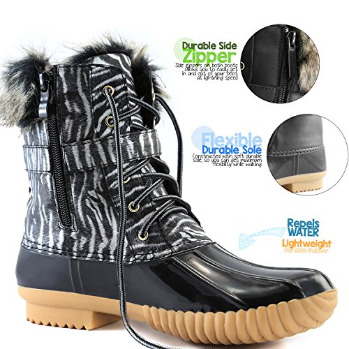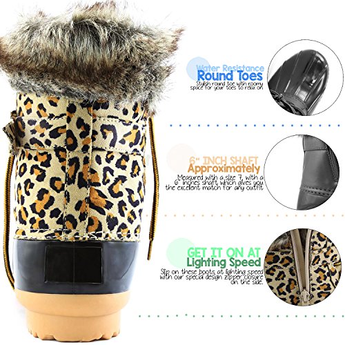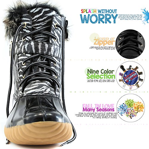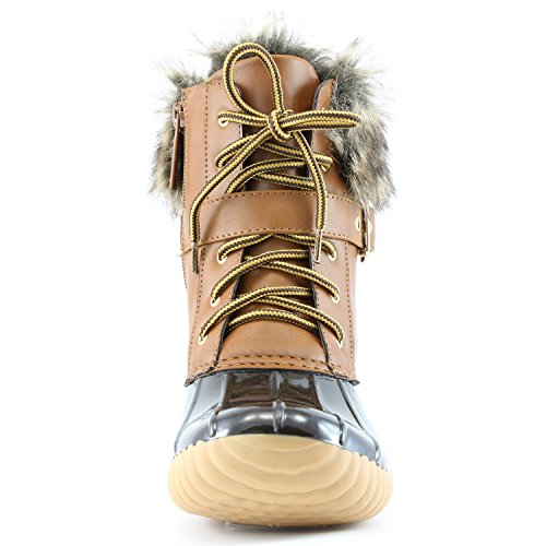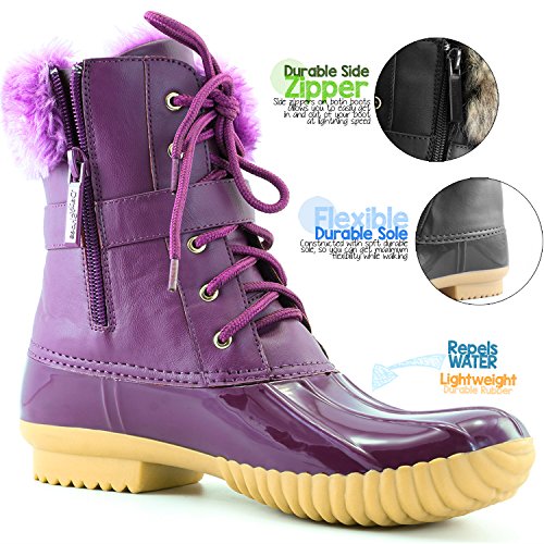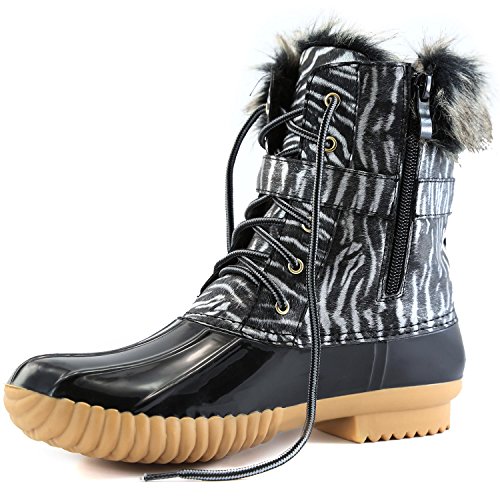 | DailyShoes Women's Snow Booties Lace Up Ankle Buckle Duck Padded Mud Rubber Rain boots |
