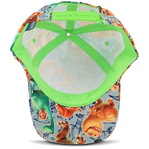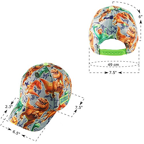 -. Feature : ★ Toddler boys baseball cap featuring Spot, Ramsey, Butch and Nash from Disney Pixar's The Good Dinosaur / ★ Gray and green 5-panel baseball cap is made of durable cotton twill. Features curved brim, fully sublimated character artwork, an inside sweatband and green plastic snap back closure / ★ Adjustable custom fit with easy-to-use snap closures for toddler boys aged 2-4. Approximate crown dimensions: 7.5" (L) x 7.5" (W) x 6" (H) - 49 CM circumference. Brim is 2.3" (L) x 6.5" (W) / ★ Care instructions: Hand wash cold with like colors. Non-chlorine bleach. Lay flat to dry. Do not iron. / ★ Officially licensed Disney product