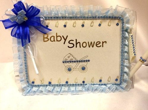 -. Feature : Welcome to onlinepartycenter, your online source for everything party, the party starts here! / One Baby Shower Guest Book Blue Shades Hand-Crafted Keepsake Book / A baby shower hand-crafted guest book prepared with simulated rhinestones and matching lace. Create your special baby shower with our hand-crafted arrangements. / Include: one Guest book approx 9"H X 6" W / All sales are final with hand crafted items, thank you sooooo much for your understanding. Please note: All centerpieces, caketops, party favors, and guest books are 100% hand-crafted. If in transit they become unglued, you will have to glue them yourself with a glue gun on craft glue. Examples; flowers, tulle, ceramics, plastics, Styrofoam, etc. We cannot be held responsible for items unglued, not broken. Thank you sooo much for your understanding. We hope you enjoy our hand-crafted keepsakes for years to come. At onlinepartycenter, We specialize in handcrafted favors, cake toppers, centerpieces guest books and more for all occasions such as Baby Shower, Weddings, and Birthdays. We aim to please, our satisfaction comes when our customers are happy with our unique designs. We trust that you will be honest with us by informing us how you felt when you gave out your party favors to your guest at your party, or the excitement you felt when you placed the cake topper you chose for your special cake, or what about the satisfaction you felt in remembering those treasured moments with our one of a kind design guest books. At onlinepartycenter, we wish you and your family the best that life has to offer, make your special occasion stand out from the rest with our specialized handcrafted designs. Congratulations!