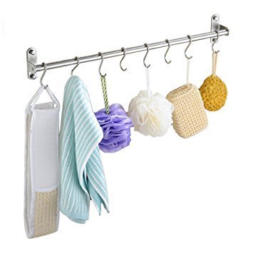- EXTENSIVE APPLICABILITY AT HOME: Simple installation and working style make it useful in ont only kitchen, but also other places. Placed in clothespress to hang clothes; Placed in bathroom to hang towel and clot; Also placed on the wall behind the door of living room to hang coat, briefcase, umbrella and more as you can think.