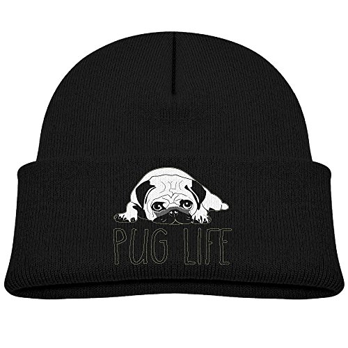 (Raining Sunlight)/Accessories/Cold Weather Accessories/DIRECT FROM USA/Raining Sunlight Kids Fashion Pug Life Dog Hand Drawn Black White Casual Flexible Winter Knit H...