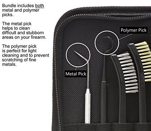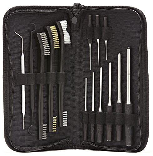 9 PIECE GRIP ROLL PIN PUNCH SET & 5 PIECE GUN CLEANING SET: Help to Drive Out or Insert Solid Pins & Includes 3 Double-Ended Brushes and 2 Double-Ended Picks (one polymer, and one metal pick) Help to Clean Small Parts and Hard-to-Reach Areas.