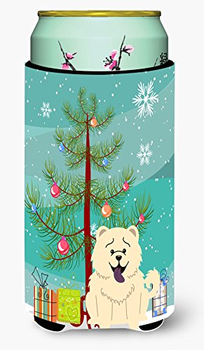 Caroline's Treasures Merry Christmas Tree Chow White Tall Boy Beverage Insulator Hugger BB4265TBC, Multicolor