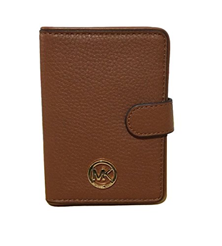 Wrapped in soft pebbled leather with polished gold tone hardware. This compact passport holder is accented with Michael Kors logo lozenge on the front and has a tab and snap closure. It has a leather and signature nylon interior that features 5 card slots, and 4 open slip pockets. It measures approximately 3.75 inches (L) x 5.25 inches (H).Feature