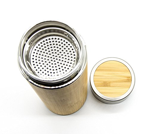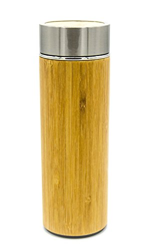 Natural Bamboo Flask & Tea Tumbler – features double-wall vacuum insulation to keep your drinks HOT or COLD for Hours! Comes with strainer/infuser, perfect for Tea and infused drinks.