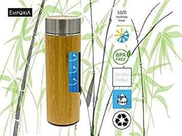 - THE NATURAL BAMBOO FLASK & TEA TUMBLER by Emporia is made from food-grade 18/8 stainless steel and is non-toxic, non-leaching, corrosion resistant, Phthalate and BPA-Free (naturally!) The interior will not stain regardless of what tea you place inside, English Breakfast, Earl, Green Jasmine, Herbal or other. Go ahead and use it for coffee too!