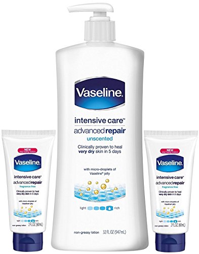 -. Title : Vaseline Intensive Care Advanced Repair Fragrance Free Body Lotion, 32 Ounce Pump Bottle with 2 Bonus 2-Ounce Tubes