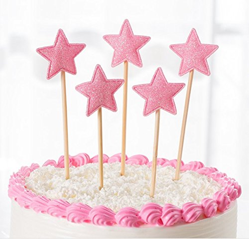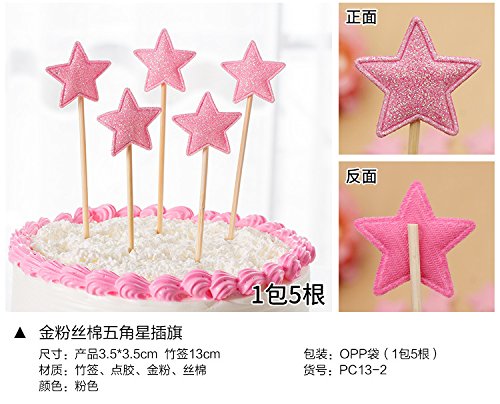 Color: Pink. Material: Wood and glitter sponge. Star size: Approx. 3.5 * 3.5cm/1.38*1.38 inch (L * W), Picks size:Approx. 13cm/5.12 inch.