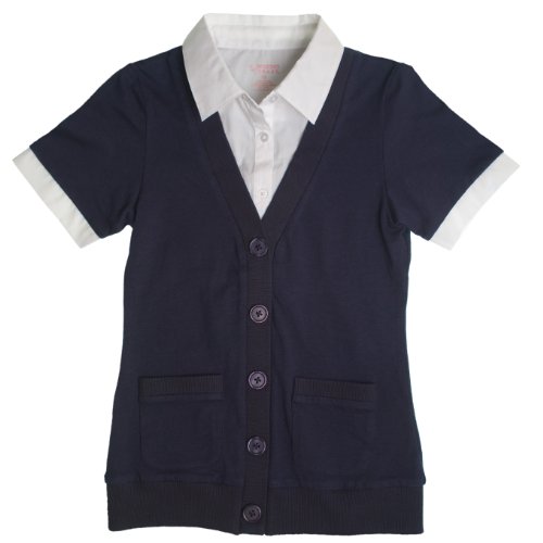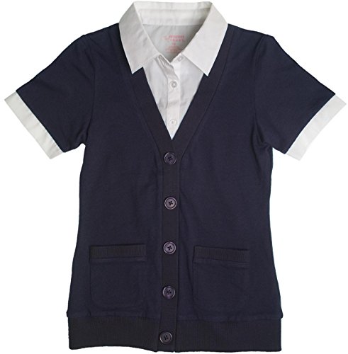 What's better than a shirt and a cardigan? Our short sleeve 2-fer cardigan that is designed for style and comfort. Cotton blend poplin/jersey Mock shirt sleeves and collar Rib placket and hem Patch pockets at hip Pleated detail at the back Machine washable ImportedFeature