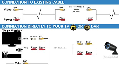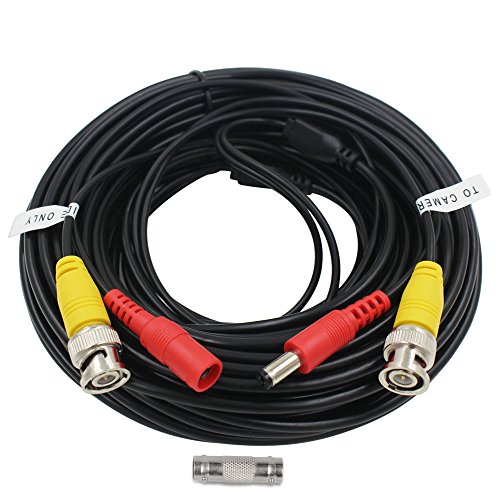 AimHD 60 Feet BNC Cables CCTV Camera Video/Power Extension Siamese Cords Pre-made All In One BNC/DC Connectors For HD 720P 1080P DVR Surveillance Recording System-Black