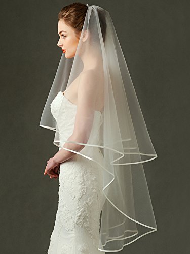 Binding : Apparel Product Description Single Layer or Two layer Veil? Here are Some Things to Consider... One layer veils are lovely with any dress and often have a more relaxed, casual feel. Single layer (also called single tier) veils are a wonderful choice for brides who want a minimal and less formal, but still chic look. A single layer veil also works well for a bride who is planning to wear their veil at the back of the head to accentuate an updo. When a bride is thinking "no veil", LynnBridal's stylists always recommend they try a single layer veil before wholly rejecting this classic accessory. The wedding veil really gives the bridal ensemble a complete look. 0