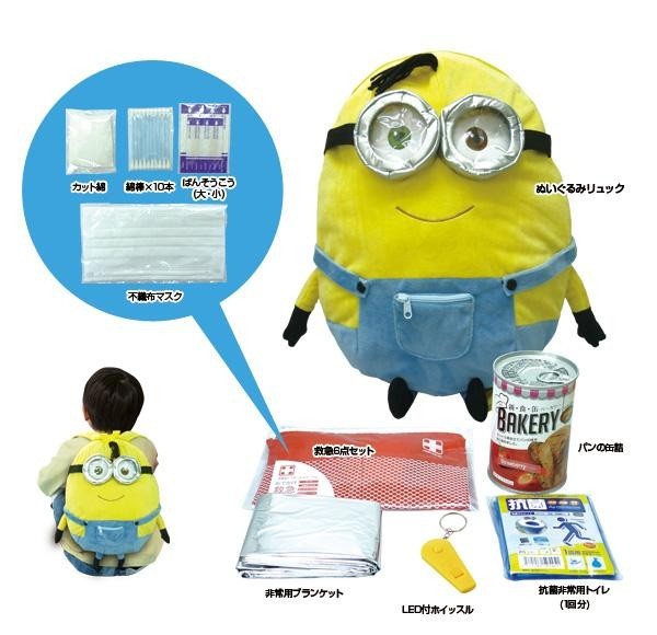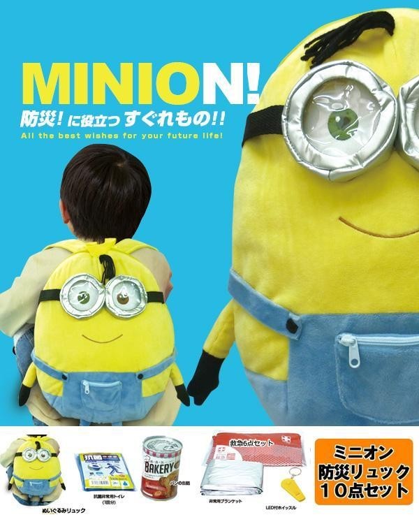 | ミニオンのかわいい立体リュック&防災グッズ10点セットです。 |