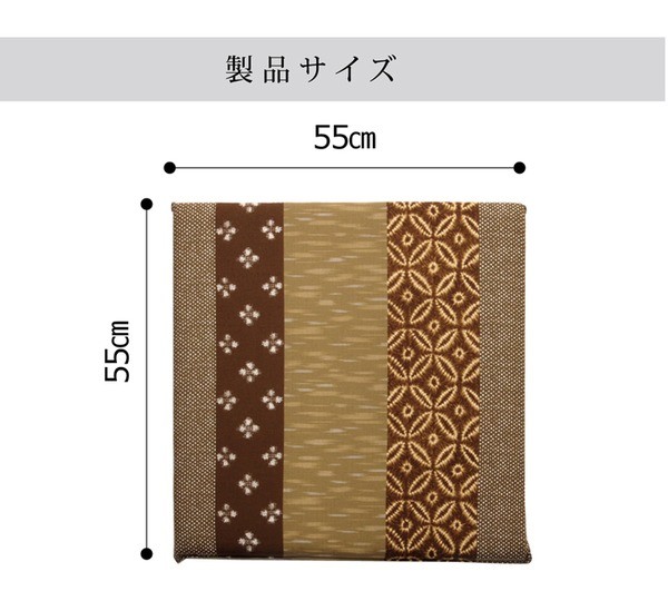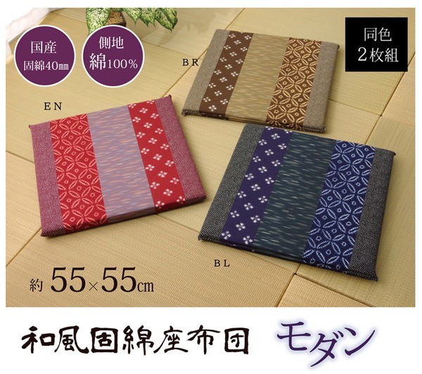 綿100%和柄の座布団です。綿は繊維の中でも特に肌触りがよく、季節を選ばずオールシーズンご使用頂けます。和風の雰囲気のある柄なので家のリビングだけでなく、お店(居酒屋、和風の飲食店など)にもおススメです。中材には固綿40mmを使用しています。耐久性があり、薄めでもしかりとした座り心地です。※本商品の側地部分の取り外しはできません。