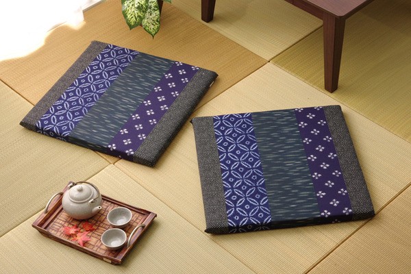 【商品名】座布団 綿100% 国産 和柄 『モダン 絣座布団』 ブルー 約55×55cm 2枚組