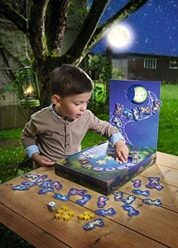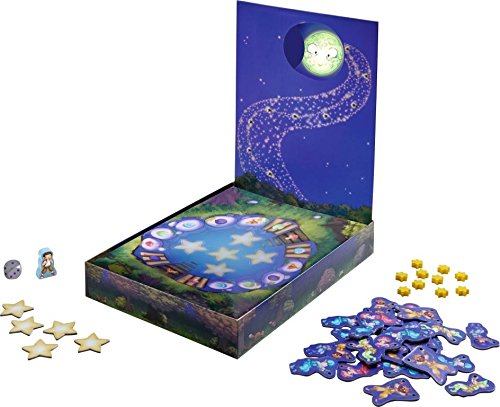 Studio : Haba Publisher : Haba Binding : Toy Product Description Paul and the moon is a cooperative memory game for 1-6 players, plays in 5-10 minutes. Players take control of Paul moving him around the pound, when he is moved on a new space look at the symbol on the same. Now pick a star that you think has the matching headdress symbol to the space Paul is on. If you are correct hang the star along the star path, creating part of the star ladder. If you did not pick the matching star, return the star (facedown) in the pond. And pull the cloud over until the new yellow star is visible, covering more of the moon. The next player now takes there turn. If you complete the star ladder before the moon is covered, you have saved the moon! There is also a competitive mode and two variations on the co-op mode to play. 0