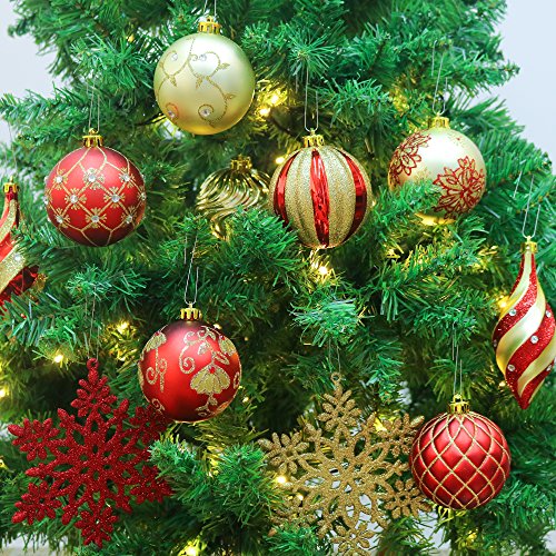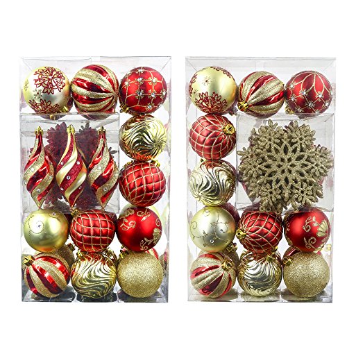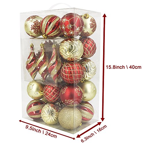 Valery Madelyn 40ct 80mm Luxury Collection Red and Gold Shatterproof Christmas Ball Ornaments Decoration, 8cm/3.15inch, 40 Metal Hooks Included, Themed with Tree Skirt(Not Included)