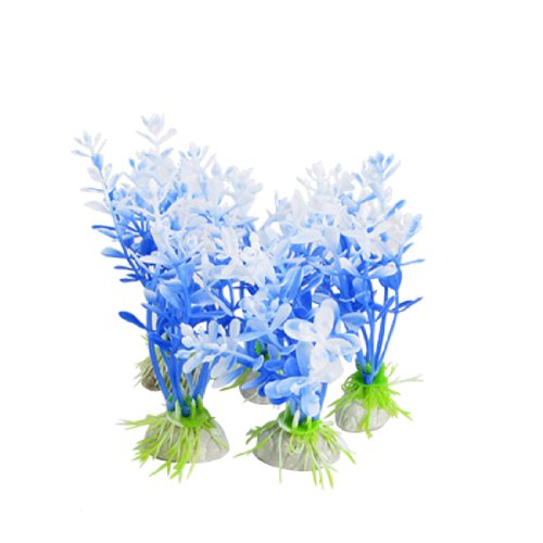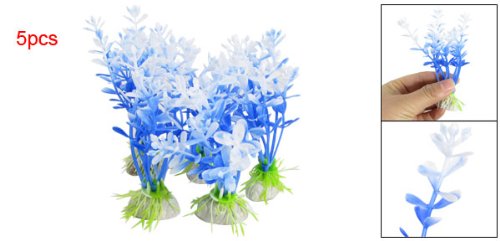 -. Feature : Product Name: Aquarium Plastic Plant; Material: Plastic, Ceramic / Base Size(Approx.): 3.3 x 2cm/1.2" x 0.7" (L x W ) / Total Length (Approx. ): 11cm/4.3" / Plant Main Color: Blue; Weight: 77g / Package Content: 5 x Aquarium Plastic Plant