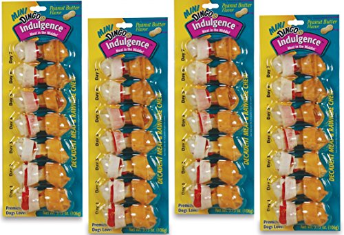 -. Binding : Misc. -. Brand : Dingo -. EAN : 0615650342013 -. Feature : 28 Total (4 Packs with 7 Bones per Pack) Dingo Indulgence Mini Bones, Peanut Butter Flavor / Premium rawhide dipped in a decadent artificial peanut butter flavor / A rich treat unlike any other / The perfect way to spoil your dog / Ideal for small or toy breeds. -. Label : United Pet Group -. Manufacturer : United Pet Group -. MPN : P-34201A -. PackageQuantity : 4 -. PartNumber : P-34201A -. ProductGroup : Pet Products -. ProductTypeName : PET_SUPPLIES -. Publisher : United Pet Group -. Studio : United Pet Group -. Title : 28-Count Dingo Indulgence Mini Bones, Peanut Butter Flavor - (4 Packs with 7 Bones per Pack) -. UPC : 615650342013